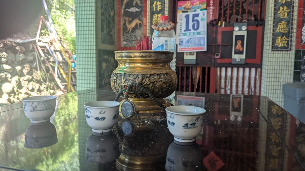 When a friend’s wife saw the bolt cutters, she suggested I check in with the local official (the Li-Zhang 里長, neighborhood boss). She thought they’d be happy someone wanted to clean it up. When I arrived at the office, three a-mas (grandmothers 阿媽) were sitting at a table. When I told them I wanted to clean the place out and install Tudi Gong (the God of the Earth, Earth Unc 土地公), they were hyped!