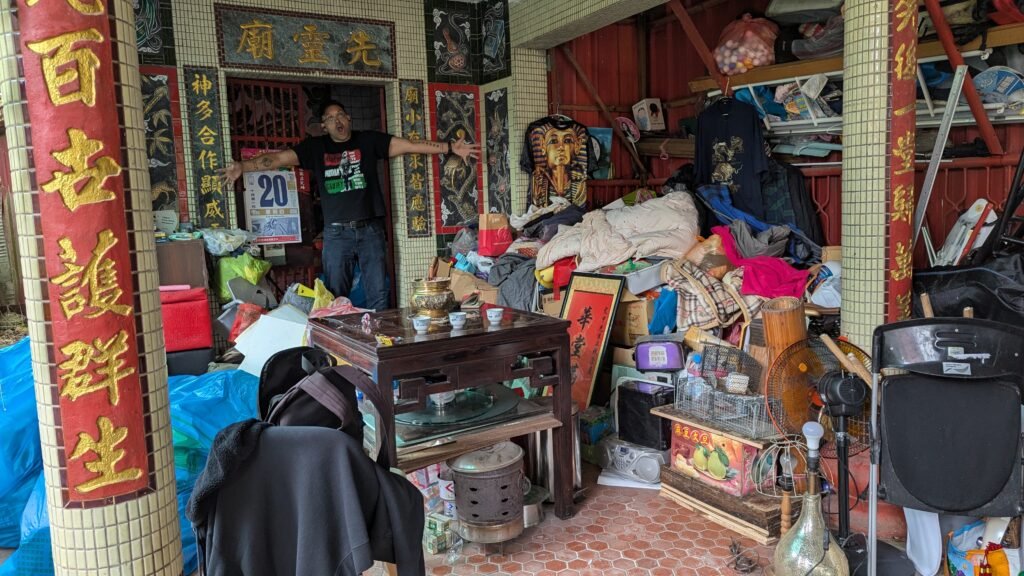 In a temple this small, the work usually rests on the shoulders of one person: the miaogong (meyow gong 廟公). We’ll call him the Abbot for fun. Sometime in the last ten years, this little temple lost its Abbot. With no one to take care of it, the space fell into total abandonment. Junk covered the inside and outside. The spirits were left in the dark.